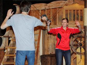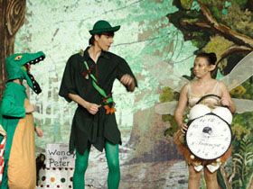 Die Geschichte von Peter Pan, dem außergewöhnlichen Jungen, der nicht erwachsen werden kann und auch nicht will? „Ihr müsst an etwas Schönes, Wunderbares denken und dann heben euch diese Gedanken daran in die Luft “ , sagt Peter Pan und fliegt los. Eines Nachts fliegt Peter Pan geradewegs ins Kinderzimmer von Wendy Darling und ihren beiden Brüdern John und Michael. Begleitet wird er von der bezaubernden Elfe Tinkerbell Sie machen die überraschten Kinder mit Feenstaub flugtüchtig und fliegen mit ihnen nach Nimmerland, in ein Zauber- reich, das nur für Kinder sichtbar ist und in dem Peter Pan hofft, dass Wendy eine Geschichtenerzählerin für seine Bande der verlorenen Jungs sein wird. In dem geheimnisvollen Land gibt die tapfere Indianerin Tigerilly mit ihrem Stamm und ein riesiges Krokodil. Aber Vorsicht! Auf der Insel treibt auch eine gefährliche Piratenbande ihr Unwesen und ihr Anführer, der einarmige Kapitän Hook, hat es schon lange auf Peter Pan und seine Bande abgesehen. Die Geschwister erleben zusammen mit Peter Pan und seinen Freunden viele Abenteuer