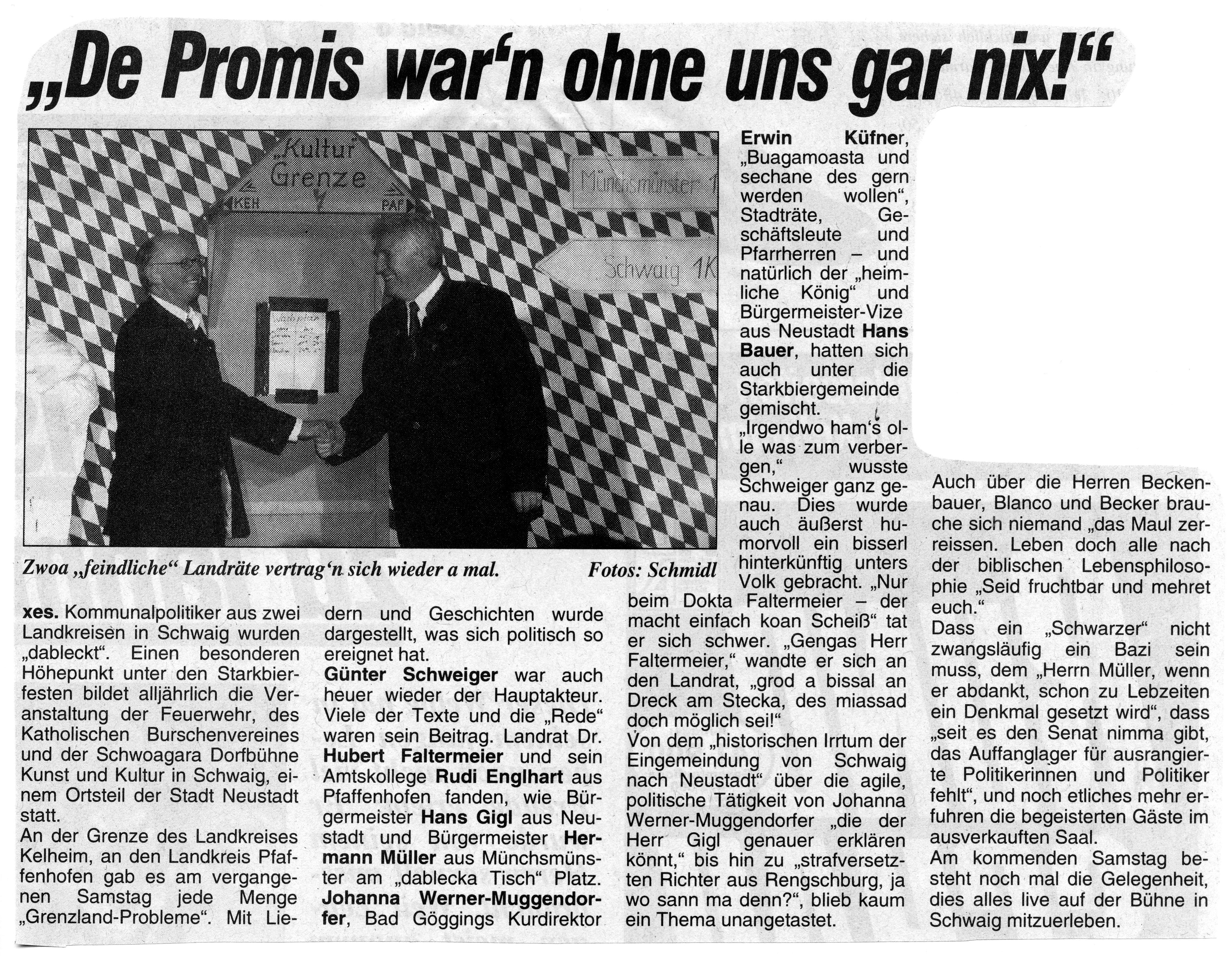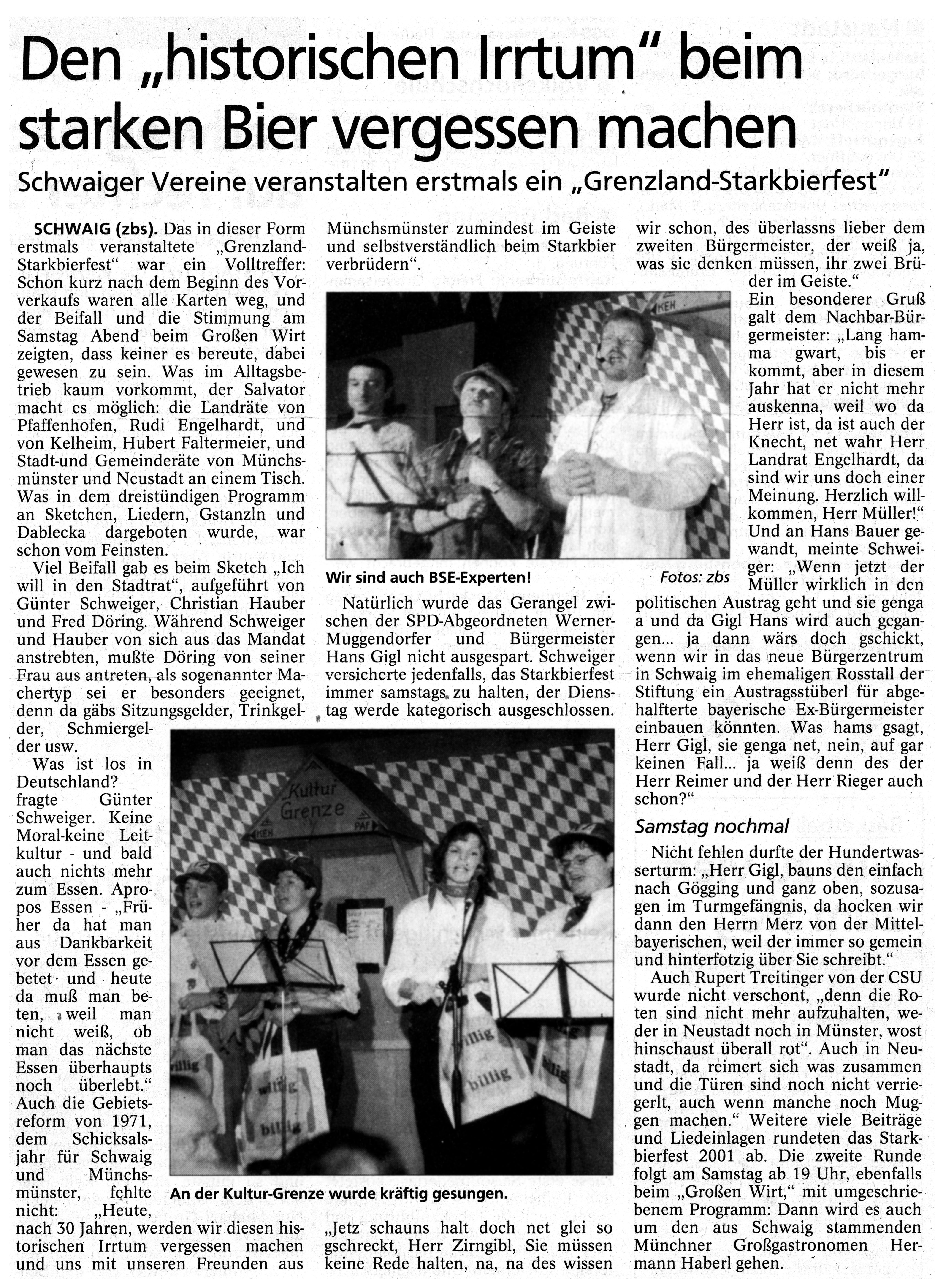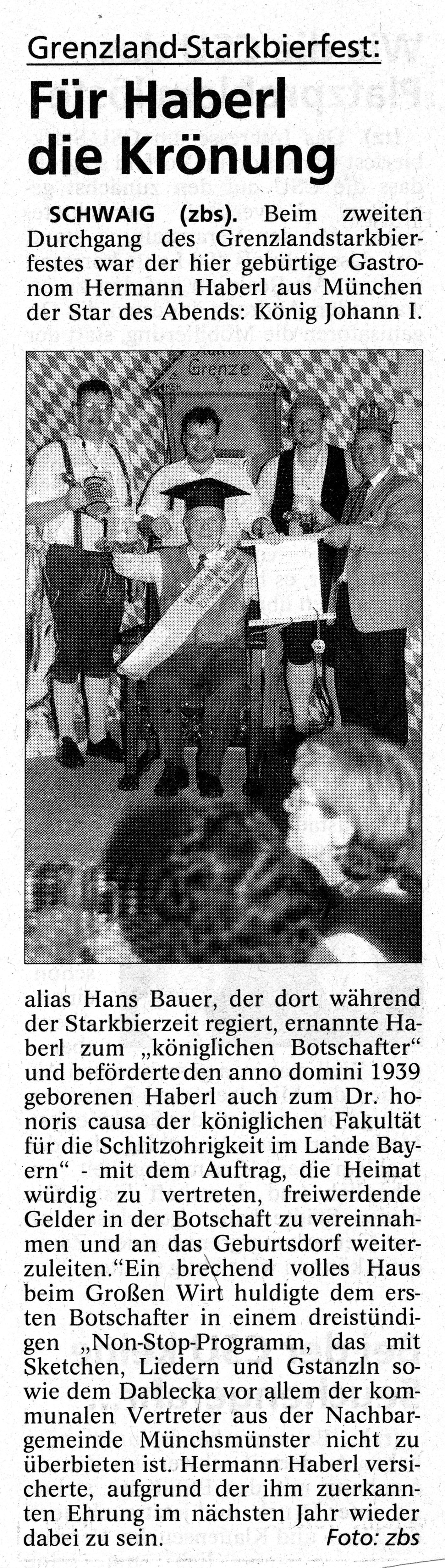 2 Veranstaltungen: erstmal unter dem Motto "Grenzland-Starkbierfest", Ernennung Botschafter Hermann Haberl