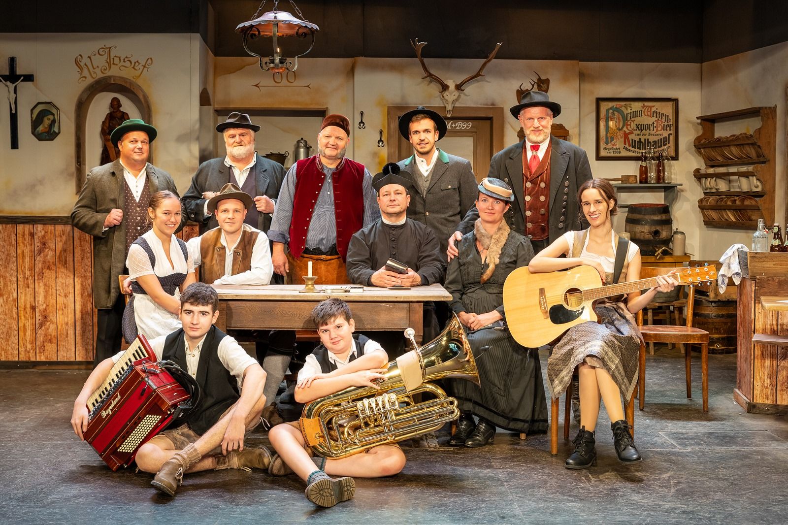 Bevor sich der Vorhang öffnete, brachten einige Darsteller mit „an bayerischen Gsangl“ das Publikum in Stimmung. Dabei wurden sie von Paul, Markus und Teresa (12, 17 und 20 Jahre) mit Tuba, Akkordeon und Gitarre begleitet. „Mit dem Einsatz von drei Nachwuchsmusikanten, die durch die Appel-Seitz-Stiftung gefördert werden, erfüllen wir auch den Satzungszweck ganz hervorragend. Drei Generationen gemeinsam auf der Bühne, das ist ein weiterer Meilenstein in der Geschichte der Schwoagara Dorfbühne“, betont Christian Hauber.