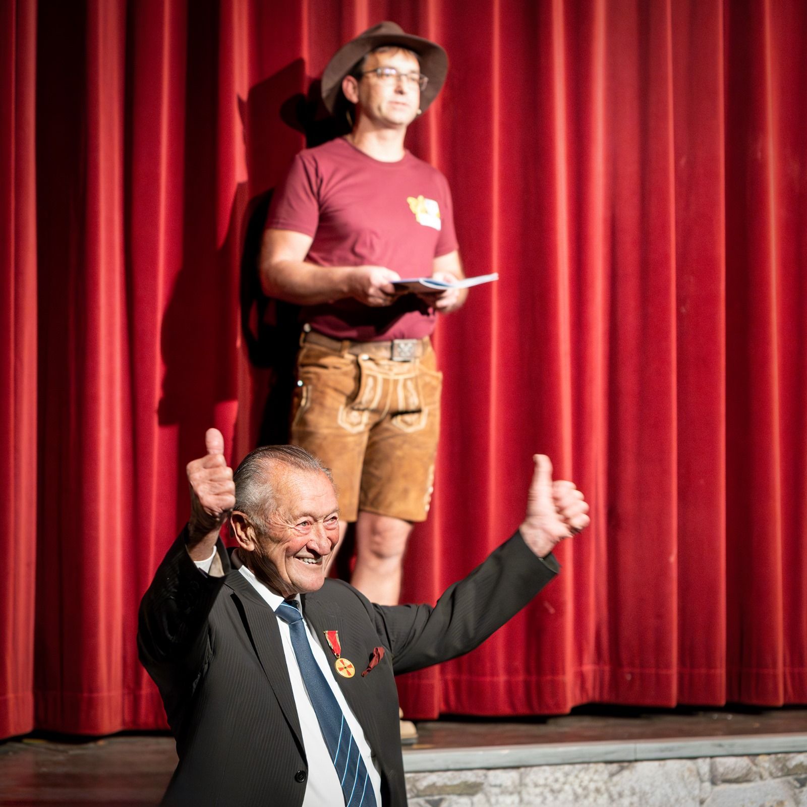 Sicherlich erfordert das auch das Vertrauen der Regieführenden und Mut und Selbstbewusstsein der jungen Darsteller. Die Basis dafür legt Regisseurin Steffi Gruner bei den Kindern und Jugendlichen in der „Theaterwerkstatt“ der Schwoagara Dorfbühne. Stolz zeigte Roland Bauer dem Publikum eine Auszeichnung über den „2. Platz in der Kategorie Kinder/Jugend des Bayerischen Amateurtheaterpreises“ durch den Verband Bayerischer Amateurtheater.