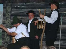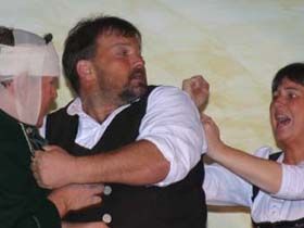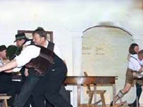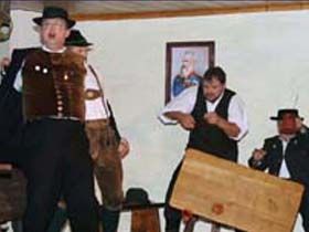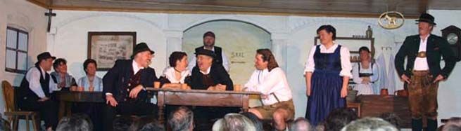 ##Kurze Beschreibung: Pankraz, der einsiedlerische, bärenstarke Holzhacker, ist zur Kirchweih gekommen. Er tanzt nicht, er wartet auf eine, die ihm vormittags in der Kirche durch’s Anschauen schon den Atem nahm. Nun nimmt ihm der Wein noch den Verstand – aber er gibt ihm andererseits Mut, einfach zur der als stolz bekannten Ev zu gehen und sich ihr zu erklären. – Ob er bei Ev mehr Glück hat, als der Forstadjunkt Spielmann bei der Wirtshanni? Die Wirtshanni schaut gern auf den Wegmacher Martl. Der wird – Hanni ist boshaft genug, damit einverstanden zu sein – von den Festfröhlichen ausersehen, der hinzukommenden trutzigen Hübner Liesl den Hof zu machen. Liesl aber ist gewitzt genug, das böse Spiel zu ahnen und weiß, so ein Mannsbild zu packen – gegen die Liebe ist freilich niemand gefeit. Doch kann Liesl es nicht glauben, dass aus Martls Tändelei Ernst wurde – und sie will es auch gar nicht. Pankraz findet die Ev höchst widerspenstig, aber den langjährigen Hagestolz hat die Liebe so sehr am Wickel, dass er eine saftige Ohrfeige von arbeitsgewohnter Mädchenhand als Sympathiebezeugung, ja als halbe Verlobung betrachtet. Soweit wäre die Parallelhandlung geradlinig, wenn auch hoffnungslos, doch nun steigert sich der Meister des Volksspieles Anzengruber, verquickt, verwickelt und gibt der Handlung menschliche Tiefe. Er tut es, indem er die „Helden“ durcheinander wirbelt. Im Kreuzfeuer der Dorfkritik muss sich die Liesl bewähren, da sie in den Verdacht kommt, es mit Martl und Pankraz zu treiben. So wird sie sogar den Haberfeldtreibern ausgesetzt, die ihr das Dach abdecken wollen. Pankraz wird gar zum tragikomischen Helden einer Wirtshausschlacht und sieht nicht weniger mitgenommen aus, als der von ihm holzhackerisch bearbeitete Forstadjunkt Spielmann. Es geht dem Autor nicht darum, ein Gaudium zu inszenieren, er zeichnet letztlich einen lebenswahren, drastischen Läuterungsvorgang, bei dem der gute Kern die harten Schalen sprengen muß. Und das geschieht. Den handgreiflich verfeindeten Männern und den mit anderen, doch nicht weniger nachhaltigen Mitteln sich bekämpfenden Mädchen gehen die Augen auf und es finden die für einander Bestimmten zueinander. Die Harmonie zwischen Pankraz und Ev lässt bis in die letzten Spielminuten hinein auf sich warten! In der Schlußszene wird Ihnen von den nochmals kommenden Haberern die Ehe auferlegt. Was im Himmel beschlossen wurde, dagegen sträubt sich der Mensch vergebens. Auch die Wirtshanni sieht das ein und ehelicht den Forstjünger. Die sehr erfreulich und meisterhaft anschaulich gemachte Lehre geht nicht zuletzt durch die Couplets dem sicher begeisterten Publikum ein.