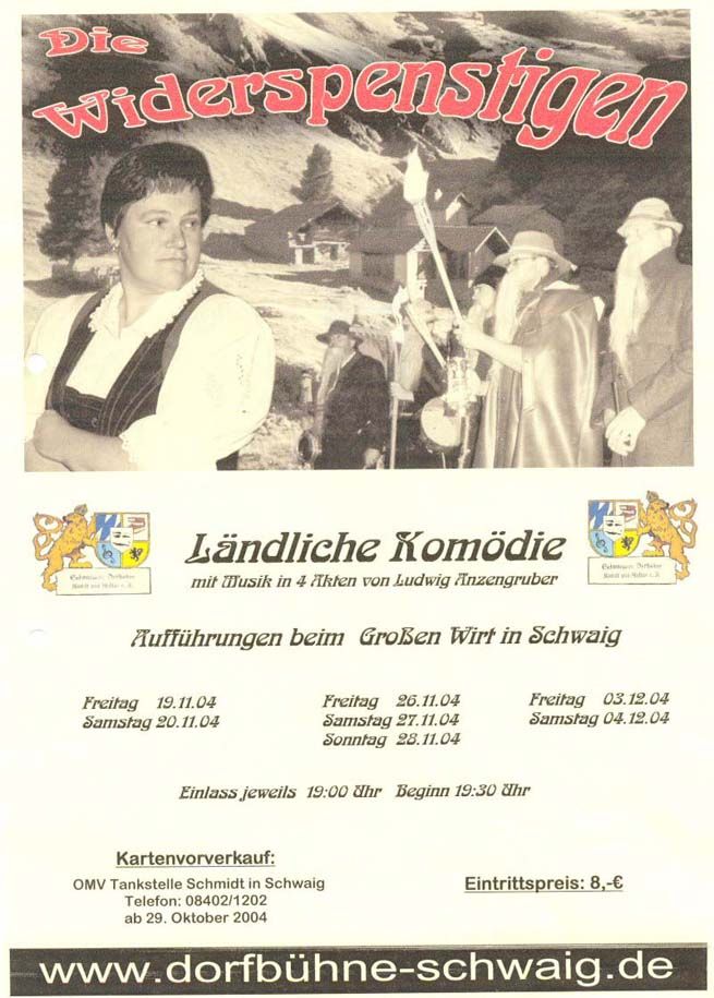 Eine ländliche Komödie frei nach Ludwig Anzengruber's Stück "Die Trutzige" (Titel der bearbeiteten Fassung von Olf Fischer, "Die Widerspenstigen")