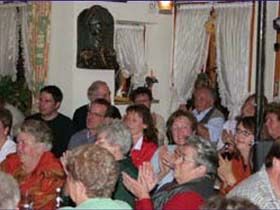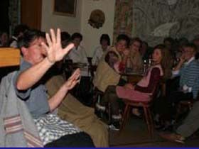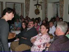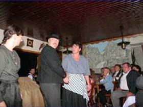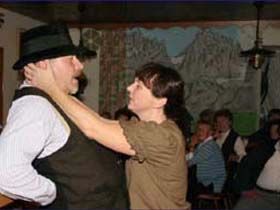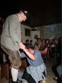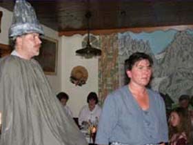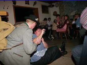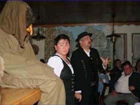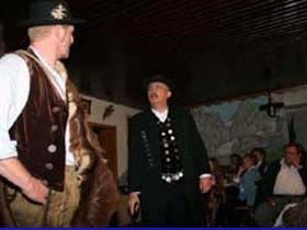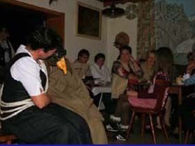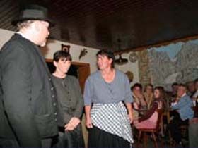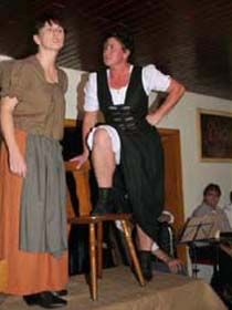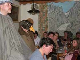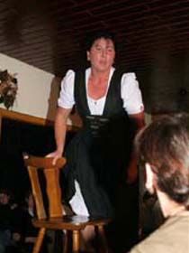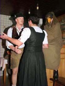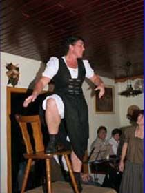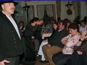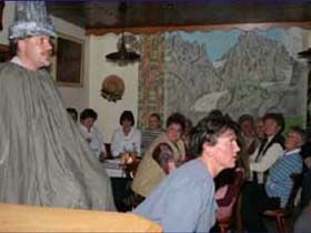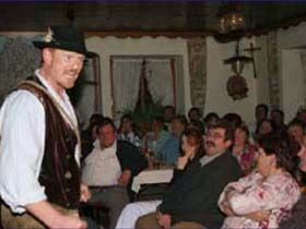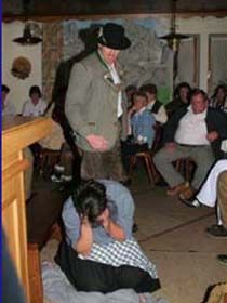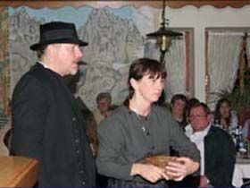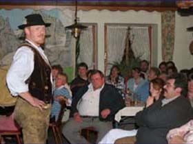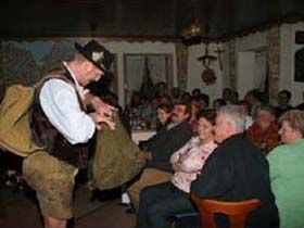 ##Magie des "Stubenspiels" Die „Geierwally“ und „s’ Almröserl“ der Schwoagara Dorfbühne sind sogenannte „Stubenspiele“. Der Begriff bezeichnet Theater, bei dem nicht die Zuschauer ins Theater gehen, sondern die Schauspieler, die Zuschauer in ihren Stuben oder dort, wo sie sich sonst gerne aufhalten, aufsuchen. Da gibt es keine Rampe und es muss der Kontakt schnell hergestellt werden, weil es keine andere Magie, weder Vorhang noch große Beleuchtung oder Dekoration gibt. Alle Faszination geht vom Spieler aus, der die Zuschauer in seine Geschichte mit einbezieht. Selbst tragische Handlungen werden lustig erzählt, denn der Zuschauer will unterhalten werden und sich dem schnellen Wechsel zwischen Ironie und Heroismus, zwischen Witz und Ernst, zwischen Text und Musik hingeben.